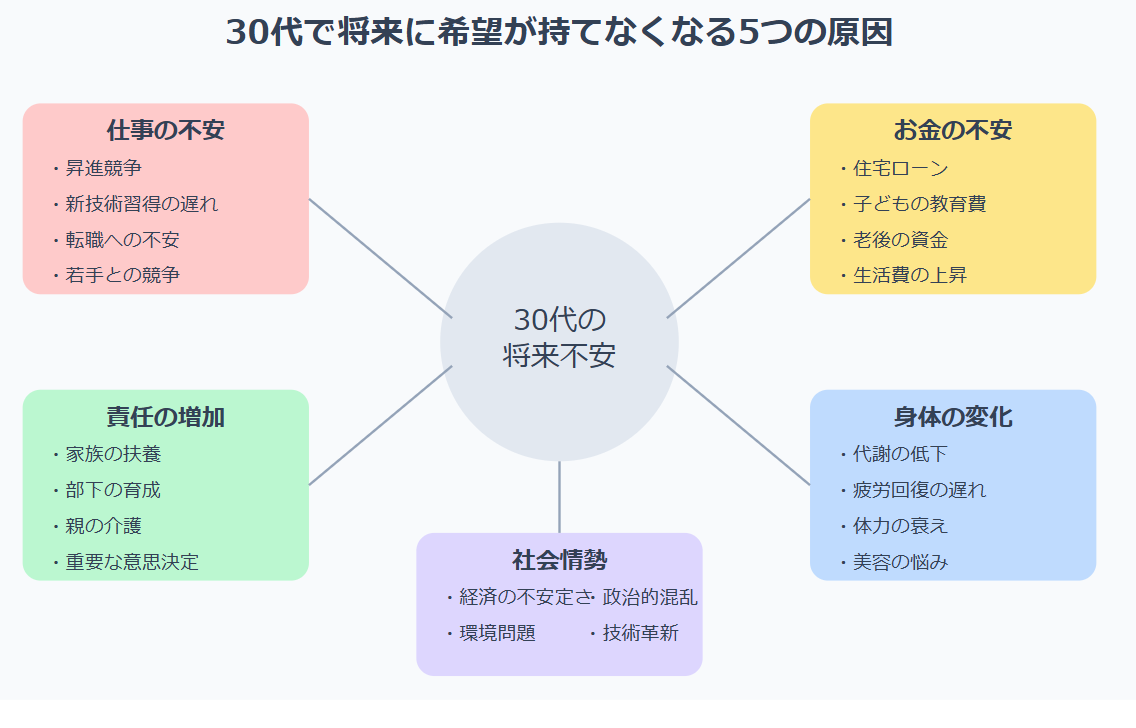 30代はこれらの要因が複雑に絡み合うため、将来の不安を感じやすいんです。
