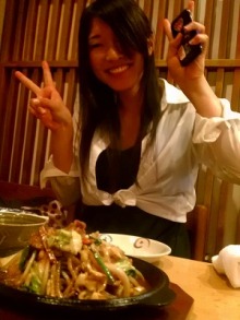 店員さんもいっしょにと記念撮影をせがむ彼女。