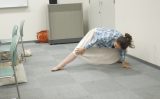 ボテッと座って両手で