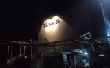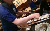 店長はハチマキにTシャツ姿。