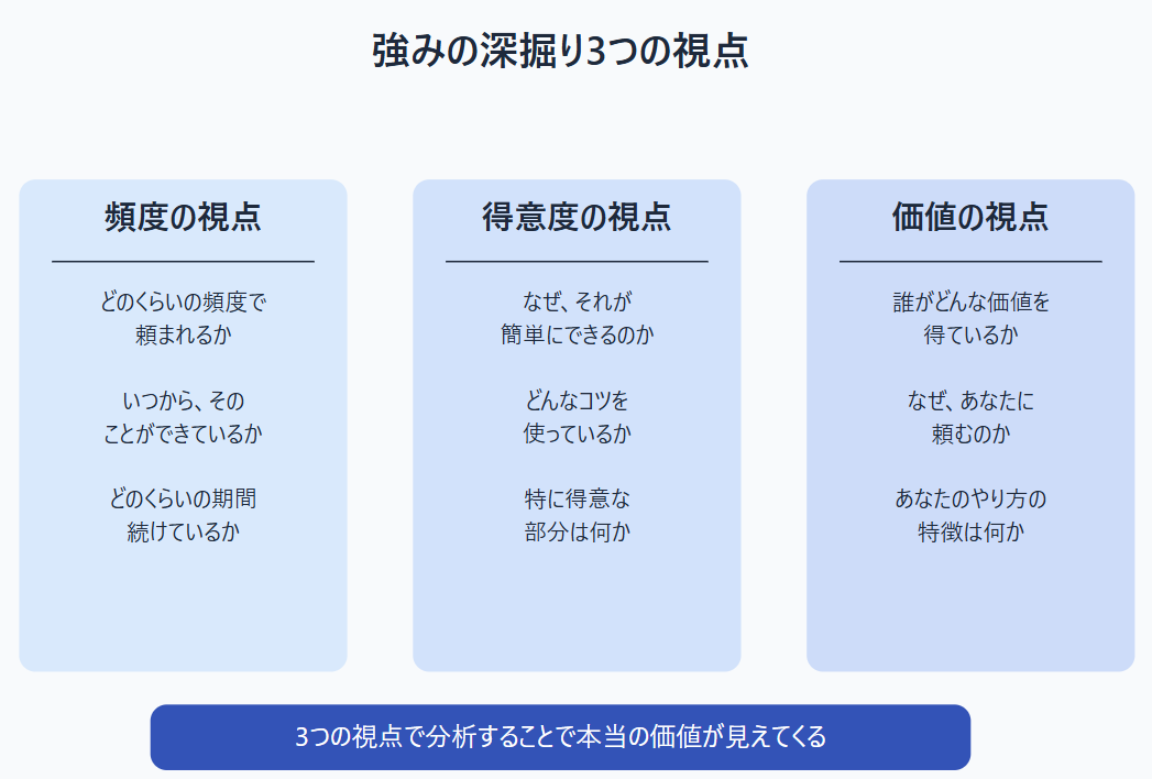 では、その強みを具体的に見つけ出す方法を見ていきましょう。