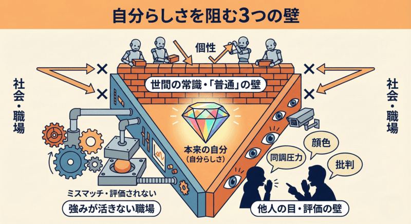 自分らしさを押し殺してしまう代表的な「壁」から解説を始めます。