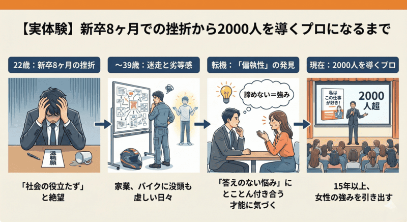 【実体験】新卒8ヶ月での挫折から2000人を導くプロになるまで