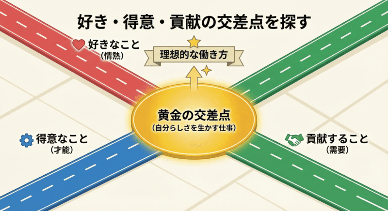 自分らしさを生かす働き方とは、まさにこの3つが重なる交差点に身を置くことです。