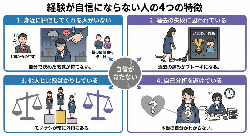 経験が自信に変わらない人には、以下の4つの特徴があります。