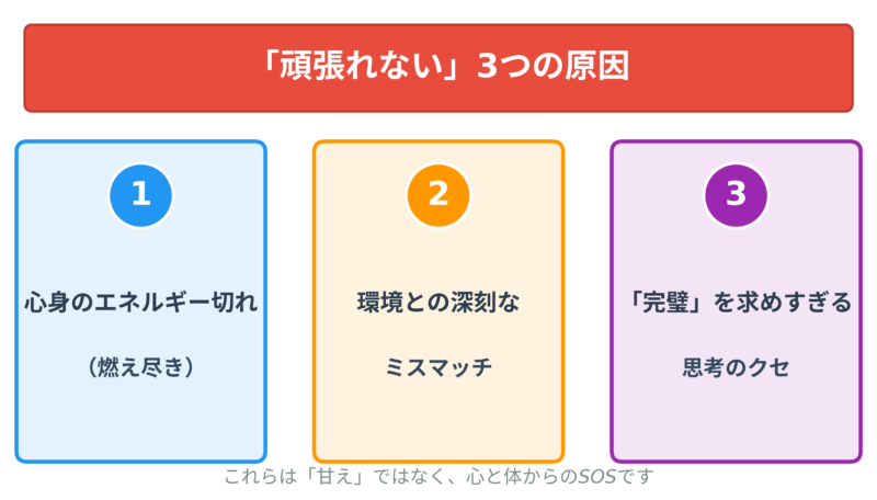 この記事では、キャリア支援の専門家として、そして同じ苦しみを経験した人間として、頑張れない本当の原因と、そこから抜け出す方法をお伝えします。