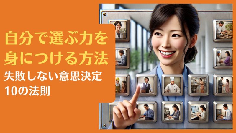 自分で選ぶ力を身につける方法|失敗しない意思決定10の法則自分で選ぶ力を身につけることは、自分らしい充実した人生を送るために無くてはならない能力と言っても過言ではありません。以下に、失敗しない意思決定10の法則を、より具体的に紹介します。