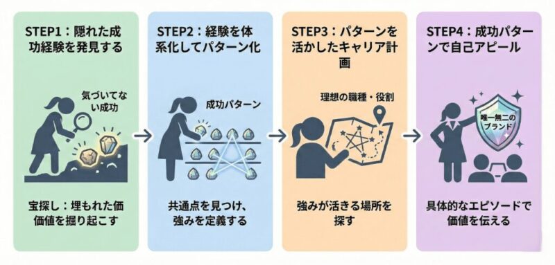 経験の棚卸しが終わったら、次はそれらの経験を体系化し、独自の成功パターンを見つけ出す段階です。