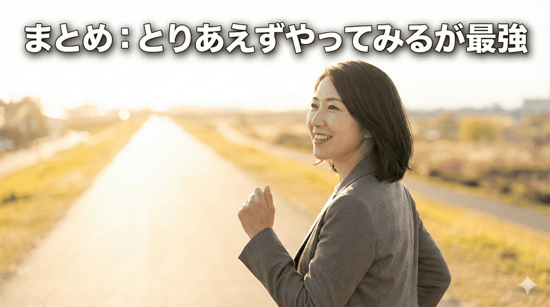 この記事を読んで、「よし、やってみよう」と少しでも思っていただけたら嬉しいです。人生経験は、誰かと比べるものではありません。自分のペースで、興味のあることから少しずつ挑戦してみればいいだけです。