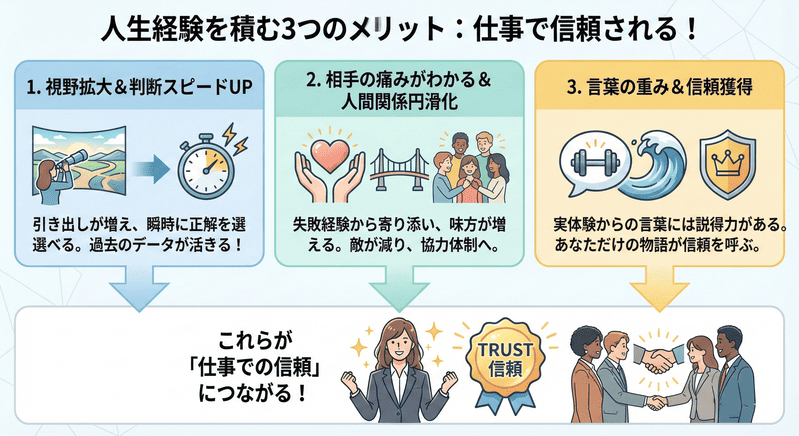 人生経験を積む3つ目のメリットは、言葉に重みが生まれ、周りから信頼されるようになることです。