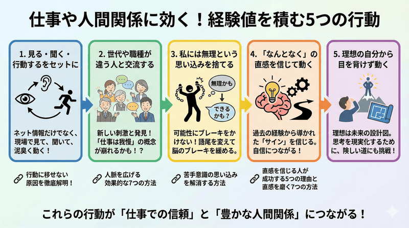 では、具体的に何をすればいいのでしょうか。 今日からできる、経験値を積むための5つの行動をご紹介します。