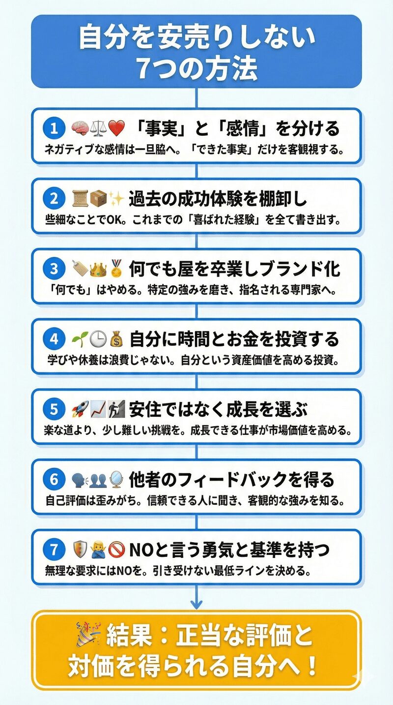 これにより、自分の安売りを防ぎ、本当の自分の価値を表現することが可能になります。