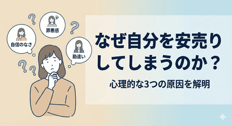 なぜ、自ら価値を下げるようなことをしてしまうのでしょう。多くの人を見てきて感じる心理的な原因は、大きく分けて三つあります。