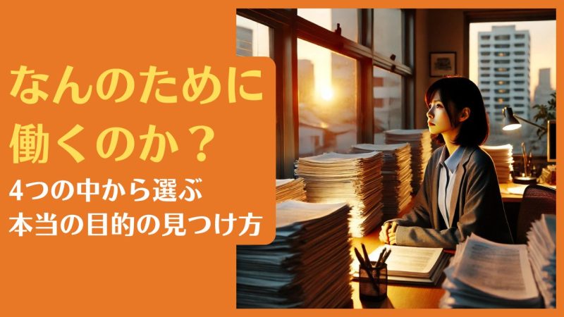 なんのために働くのか?4つの中から選ぶ本当の目的の見つけ方働くことは人生の大きな部分を占めています。しかし、仕事が忙しい毎日を過ごしていると、ふと「自分は何のために働いているのだろう?」と感じることがあります。