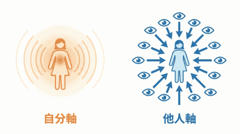 自分軸と他人軸の最も大きな違いは、何を基準に判断するかです。