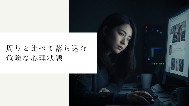 特にSNSは他人の成功や幸福が目に入りやすく、その比較が絶え間なく起きてしまいます。