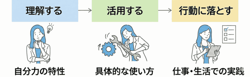 これらを具体的にどう活用するかを知り、それを生活や仕事に取り入れることで初めて、本来の自分力が発揮されます。