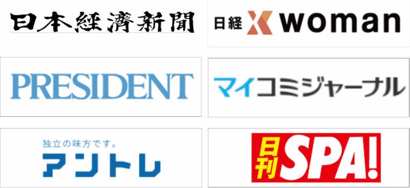 メディア実績:日本経済新聞、PRESIDENT、日経WOMAN その他多数
