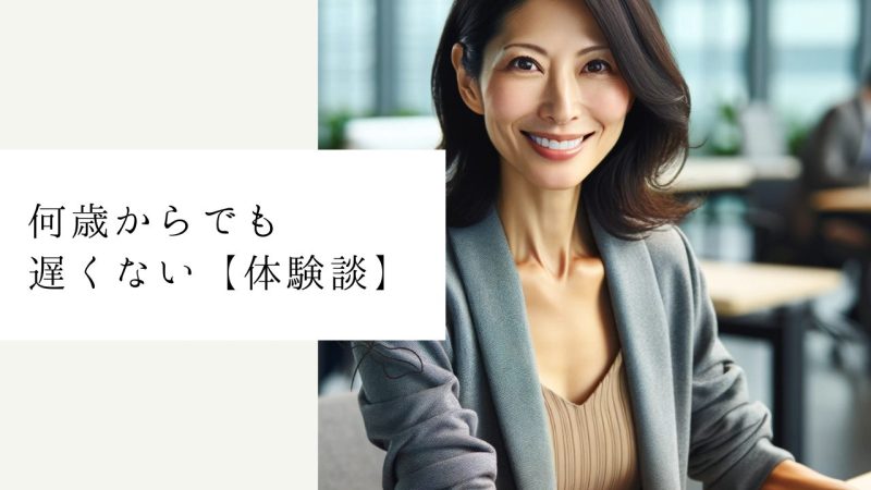 はっきり言います。何歳からでも遅くない。この記事を書いている私も実感しています。20~30代のころは、考えてばかりで何も行動していませんでした。
